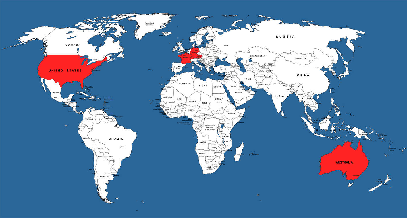 Our inter­na­tio­nal Mem­bers are loca­ted in France, Switz­er­land, Aus­tria, United Sta­tes and in Australia