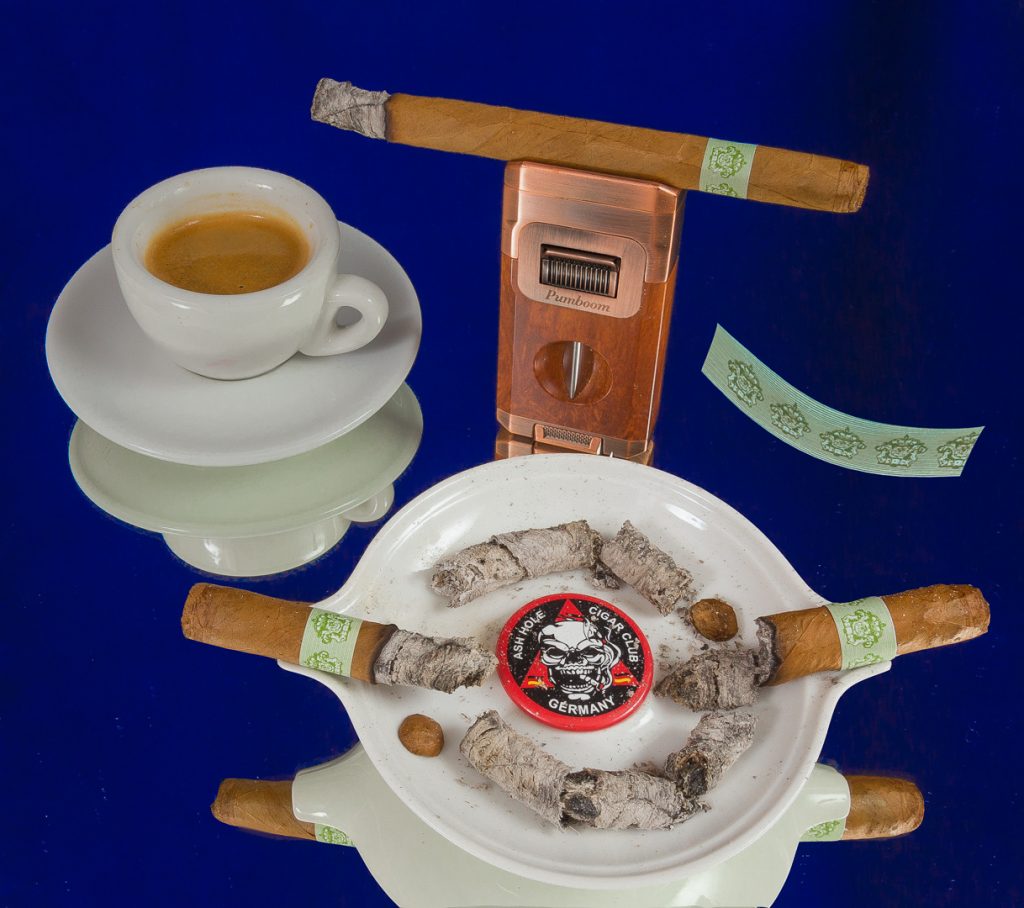 Leider waren die Raucheigenschaften unserer drei Exemplare alle unterirdisch. Schon das Anzünden war eine Herausforderung und der gesamte Smoke erforderte volle Aufmerksamkeit. Mein Exemplar stellte nach Zweidritteln die Arbeit komplett ein und ließ sich auch nicht wiederbeleben. Sehr schade!