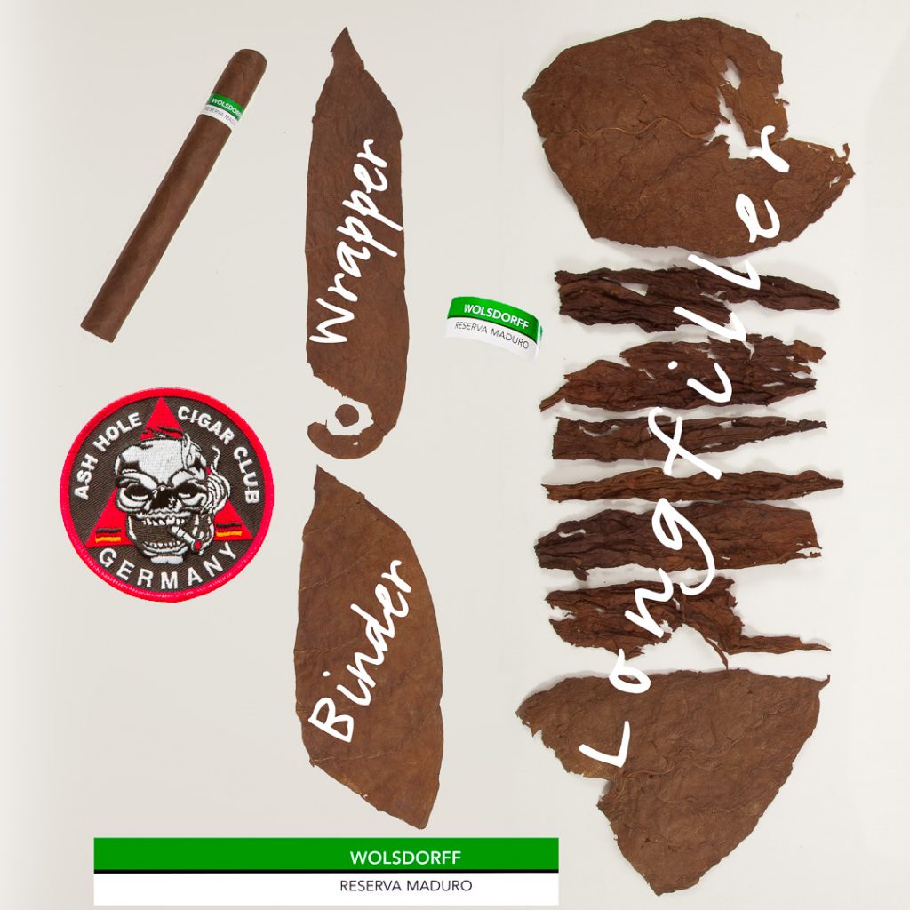 Das Connecticut-Shade-Deckblatt stammt aus Ecuador, das Umblatt aus der Dominikanischen Republik und die Einlage aus dominikanischen und nicaraguanischen Tabaken.