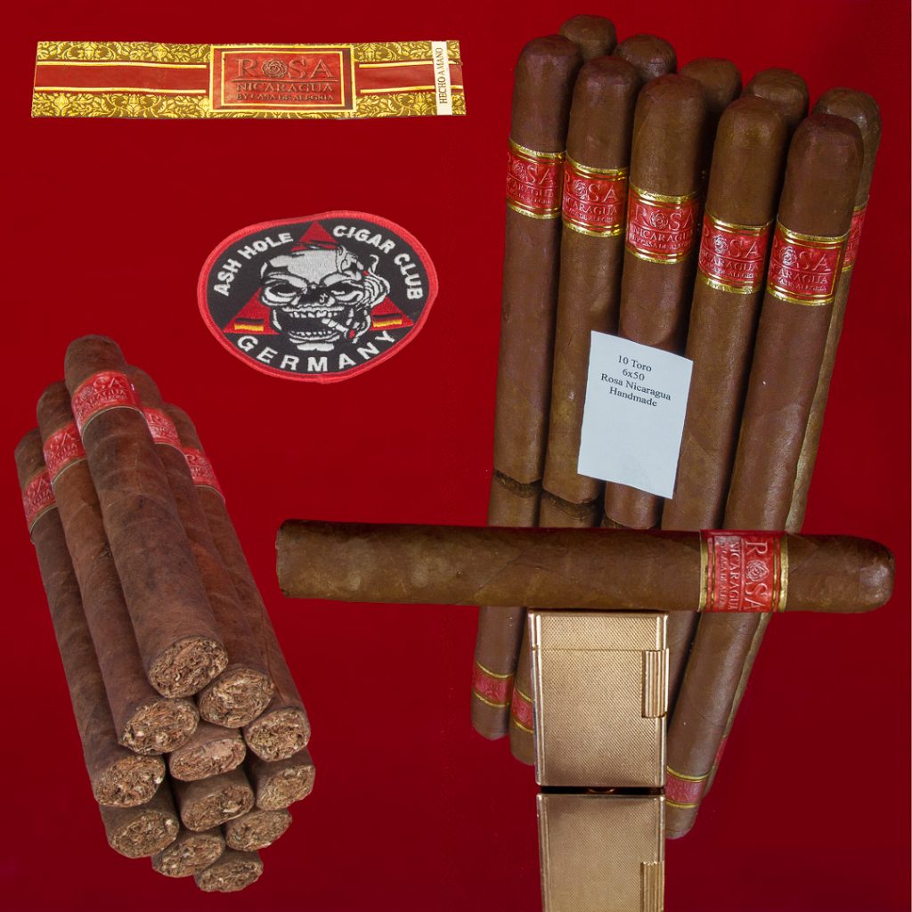 Vorneweg: Ja, es gibt tatsächlich eine recht gute Toro für unter 3,00. Wir haben diese preiswerte Bundle-Zigarre „Rosa Nicaragua“ ausgiebig getestet. Sie hat ein 50er Ringmaß und ist etwas über 15 cm lang. Das Sumatra-Deckblatt ist hauchdünn und war bei einigen Exemplaren leicht beschädigt, was den Smoke jedoch nicht beeinträchtigte. Das Umblatt stammt ebenfalls aus Indonesien, und die nicaraguanische, 12 Monate gereifte Einlage kommt aus den Regionen Condega, Estelí und Jalapa. Gerollt wird sie im kubanischen Sandwich-Stil (siehe zweites Foto) in Ralf Westerwicks Tabacalera Casa de Alegría in Estelí.