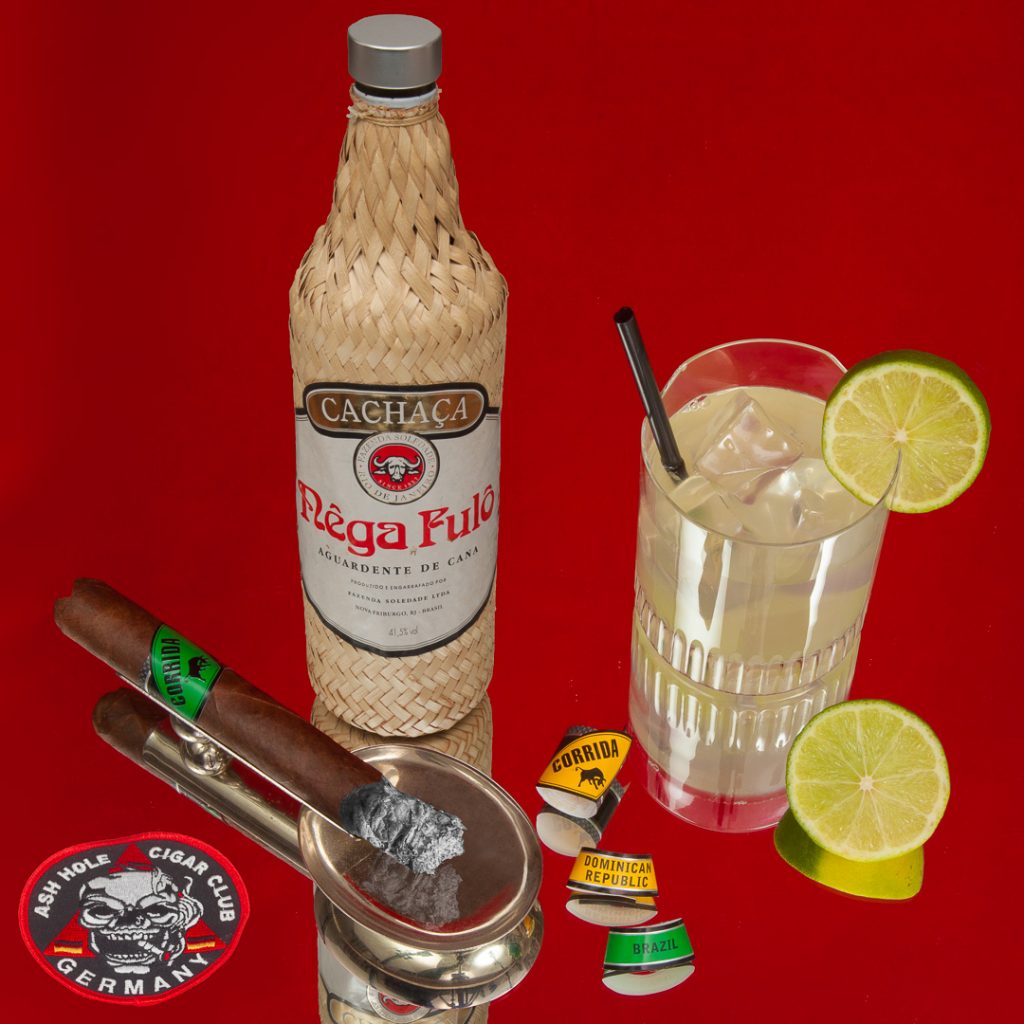 Wir haben unseren Captain Max nach einem passenden Pairing zu unserem heutigen Tasting gefragt – und er hat uns einen Drink mit dem brasilianischen Nationalgetränk Cachaça gezaubert. Denn heute war die brasilianische Version der Corrida aus unserem 4er-Sampler dran: die Toro 6x52 mit der grünen Banderole.